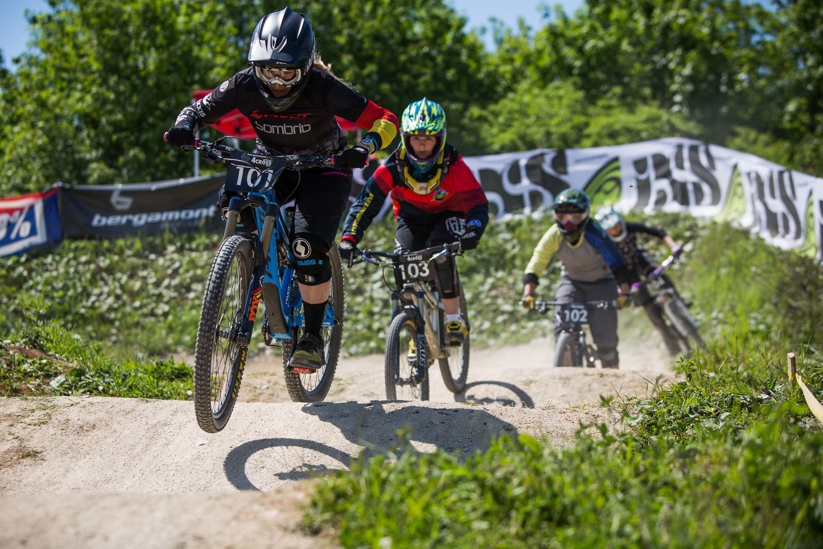 Am nächsten morgen war das Orga-Team schon früh auf den Beinen. Das Wetter hielt was es versprach, es war ein wolkenloser Himmel und es hatte an die 25°C. Die 4Cross und Slopestyle fahren staunten nicht schlecht was da für ein Slopestyle-Kurs gebaut wurde. Das 4Cross Training begann früh, daher stand schnell das Fahrerfeld statt. Insgesamt 95 Fahrer und davon 26 Elitefahrer das bedeutet 32er-Finale und viel Action. Weltmeister Aiko Göhler war vor Ort, sowie Wm Teilnehmer Tom Scherer, Jonas Gauß, Marvin Schaub, der Schweizer WM 3. von 2014 Simon Waldburger und Deutsche 4Cross Meisterin Katrin Karkhof. WM 3. 2015 Benedikt Last ist leider durch das aussetzten des Pumptrack-Rennens auch nicht fitter geworden und muss weiter pausieren. Die Quali beginnt und die Favoriten setzen sich ab.