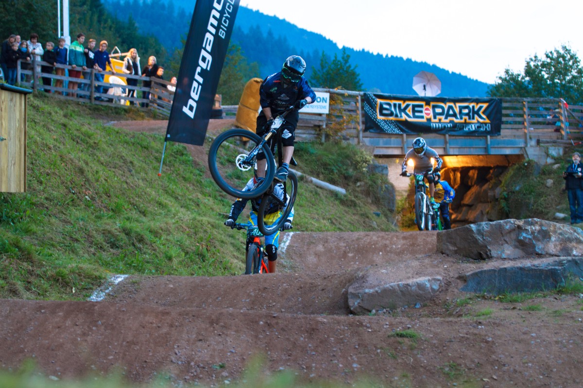 Auch bei den Elitefahrer (Kategorie 5 – Herren/Master lizenziert) ging es mit rund 24 Fahrern hart zur Sache und es war von vornherein klar, dass sich hier niemand etwas schenkte. Mit Benedikt Last (www.fourcross.de) siegte der Deutsche Meister vor dem starken Local Atiesch Manathunga (Bikepark Wolfach) und dem Schweizer Simon Waldburger (VC Leibstadt / Bergamont). Den Gesamtsieg in der höchst dotierten Klasse sichert sich zum wiederholten Mal hintereinander Simon Waldburger vor Christian Maibach und Ingo Schegk, die beide erstmals auf dem Podium der Elite Gesamtwertung stehen.