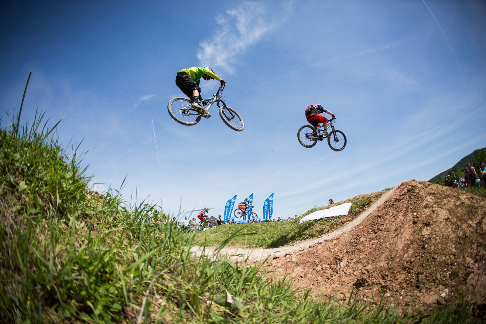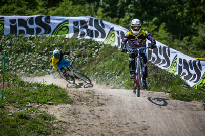Am nächsten morgen war das Orga-Team schon früh auf den Beinen. Das Wetter hielt was es versprach, es war ein wolkenloser Himmel und es hatte an die 25°C. Die 4Cross und Slopestyle fahren staunten nicht schlecht was da für ein Slopestyle-Kurs gebaut wurde. Das 4Cross Training begann früh, daher stand schnell das Fahrerfeld statt. Insgesamt 95 Fahrer und davon 26 Elitefahrer das bedeutet 32er-Finale und viel Action. Weltmeister Aiko Göhler war vor Ort, sowie Wm Teilnehmer Tom Scherer, Jonas Gauß, Marvin Schaub, der Schweizer WM 3. von 2014 Simon Waldburger und Deutsche 4Cross Meisterin Katrin Karkhof. WM 3. 2015 Benedikt Last ist leider durch das aussetzten des Pumptrack-Rennens auch nicht fitter geworden und muss weiter pausieren. Die Quali beginnt und die Favoriten setzen sich ab.